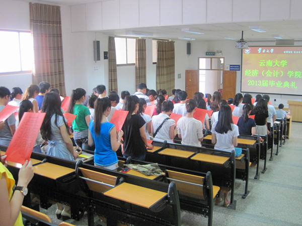 2013年6月19日下午,德赢ac米兰官方合作vwin(会计学院)2013届毕业生毕业典礼在校本部文渊楼505多媒体教室顺利举行。学院党政负责人郭树华、罗美娟、李娟及各毕业班班主任、辅导员和2013届毕业生、本科生出席典礼。院党委副书记李娟主持毕业典礼。