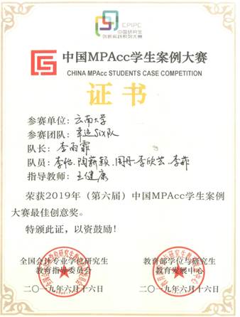 尤为值得一提的是,大赛主题的安排让我们对当前会计领域的发展有了新的认识,无论是“小米”业态之争辐射的专业领域,还是“大智移云”下企业成本管理创新相关领域的研究,都让我们试着走进、触摸会计理论与实务的前沿,启发我们思考财务人现在甚至未来可能面对的挑战与机遇,从而做足准备、迎接新征程!我们团队能取得今天的成绩,离不开云大会计硕士学位点的教师团队,离不开历届团队所创造的成绩及积累的经验。自2013年起举办中国MPAcc学生案例大赛举办以来,我校研究生团队连续6年共计11支队伍进入初赛第二阶段,其中连续四届进入全国复赛决赛(臻心、伯牙子期、We Are Ace、幸运Six团队):另外,自该赛事第二届起增设本科生团队参赛以来,我校本科生团队蝉联了四届本科生团队赛区冠军暨全国十强,5年连续6支本科生团队荣获全国本科生优胜奖荣誉。