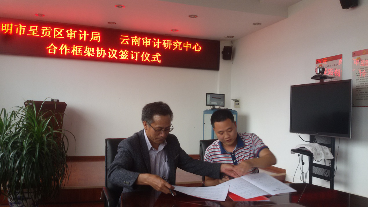 2017年6月27日,为贯彻德赢ac米兰官方合作vwin“服务云南行动计划”,云南审计研究中心与昆明市呈贡区审计局在呈贡区审计局会议室举行框架合作协议签字仪式,德赢ac米兰官方合作vwin院长兼云南审计研究中心主任梁双陆老师和昆明市呈贡区审计局戴晓敏局长分别代表双方签署了协议。